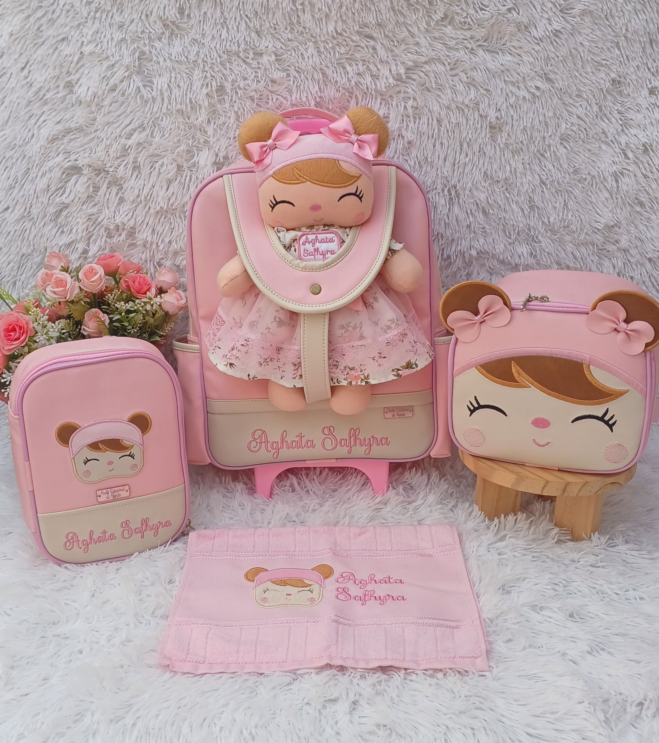 Um kit escolar personalizado feito com carinho para acompanhar a criança em todos os momentos de aprendizado. Além de funcional e resistente, cada peça é única, criada para refletir a personalidade da pequena(o) e tornar a rotina escolar ainda mais especial.